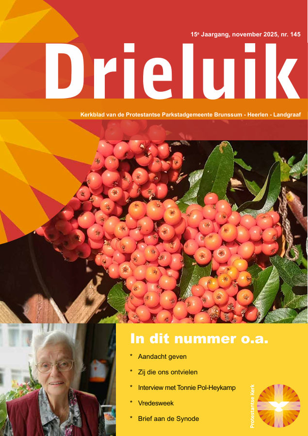 Hetzelfde geldt voor het schrijven van de Classis Zuid aan de synode van de PKN. Er wordt gevraagd om het rechts-radicale gedachtegoed, dat steeds sterker naar voren komt, duidelijk af te wijzen. Velen van onze leden zullen het daarmee eens zijn, maar het is niet de bedoeling dat hierover in Drieluik een discussie ontstaat.
